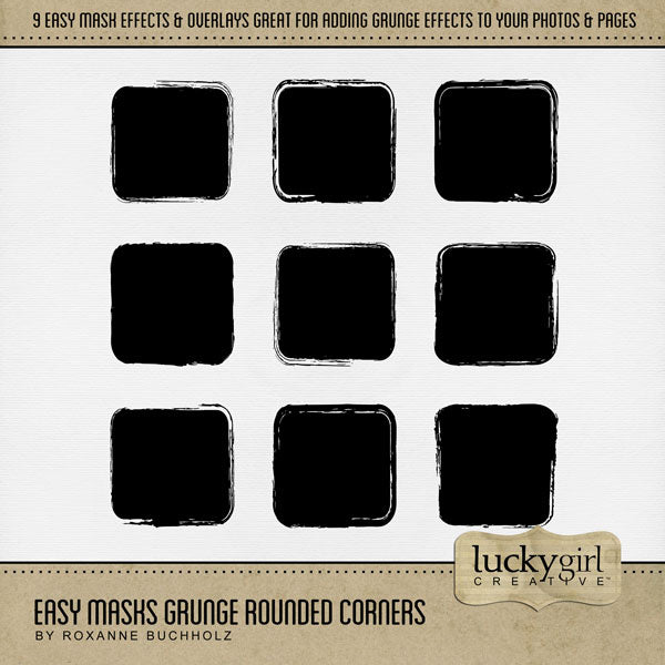 With 81 unique photo masks supplied as both standard and inverse embellishments, these digital photo masks by Lucky Girl Creative digital art for digital scrapbooking can be filled with paper or photos, colorized, or used as Blend effects. In Photoshop, drop the photo mask on your page, overlay with your favorite photo, and create a clipping path for a stunning result.