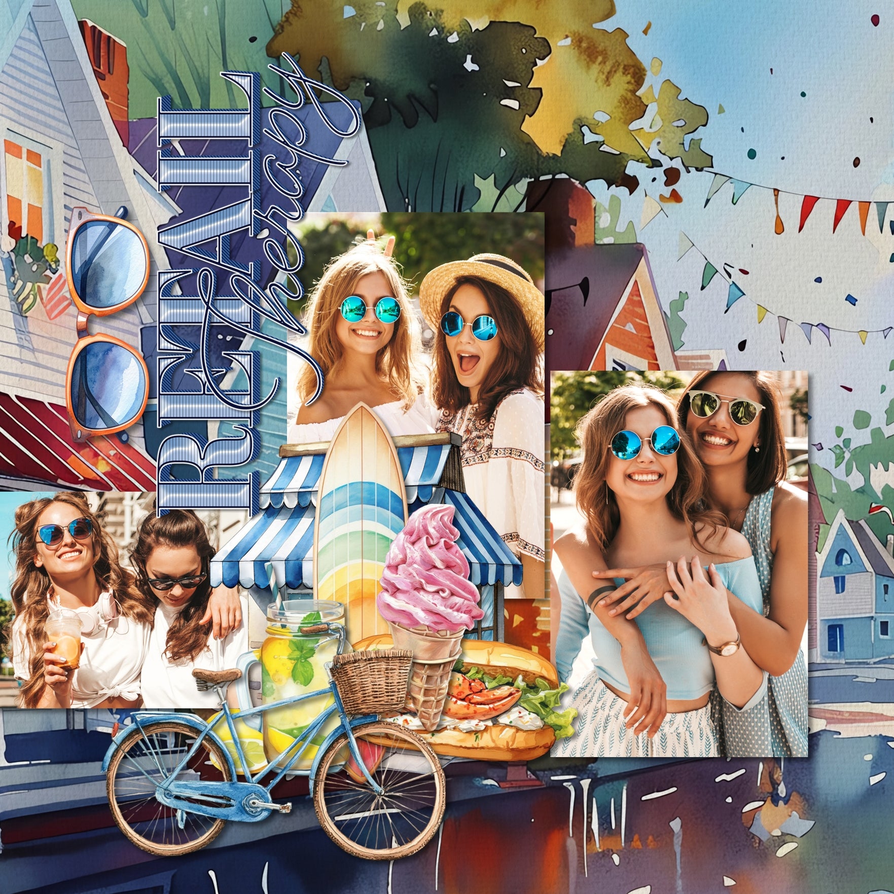 Cape Cod Watercolor Digital Scrapbook Bundle