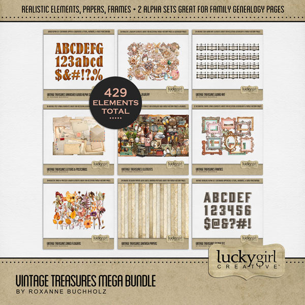 Vintage Treasures Dried Flowers Digital Scrapbook Kit