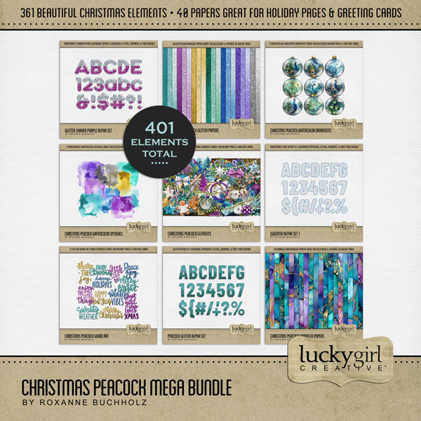 Christmas Peacock Word Art Digital Scrapbook Kit