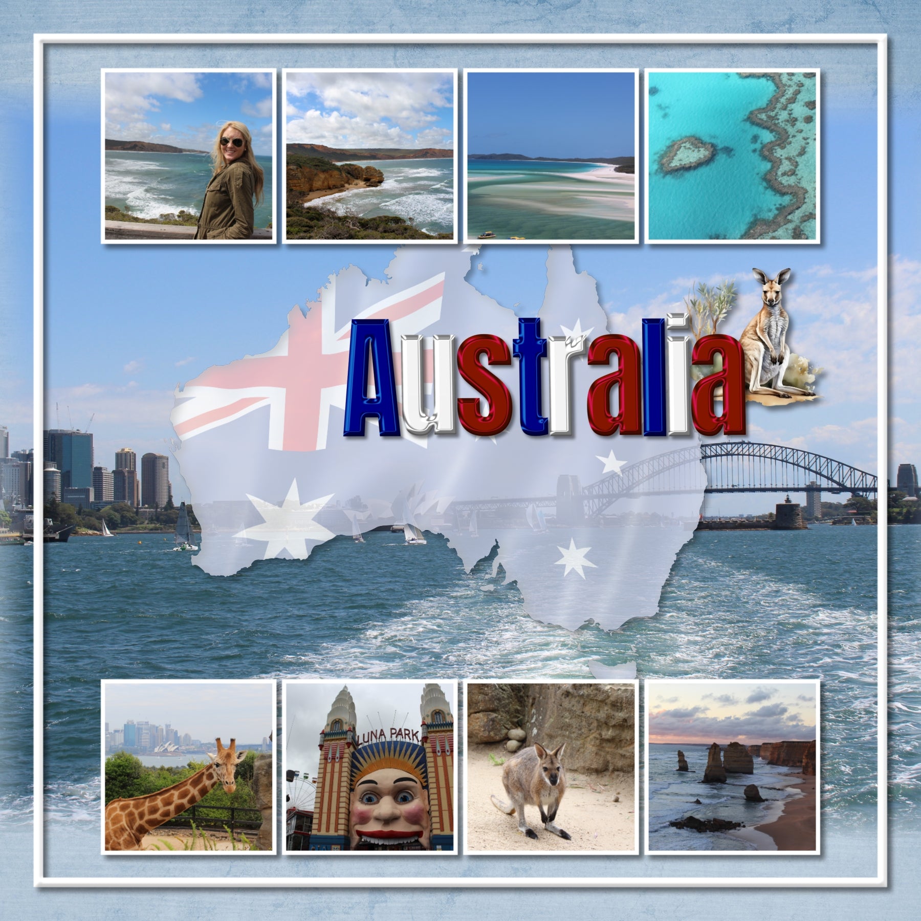 Create one-of-a-kind page titles with these versatile Australian word art embellishments and coordinated alpha sets in white, black, blue, and red!
