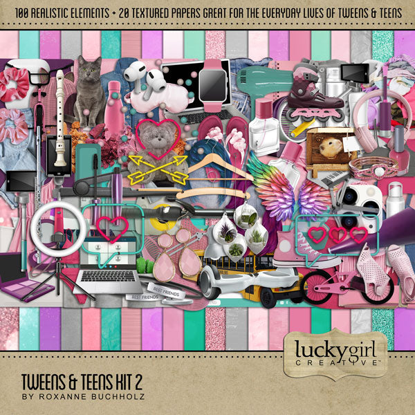The Tweens & Teens Bundle 2 by Lucky Girl Creative is filled with everything you'll need to document your children or grandchildren as they go through the different stages in life. Whether you have a young boy or girl, this collection is designed to mix and match with ease.