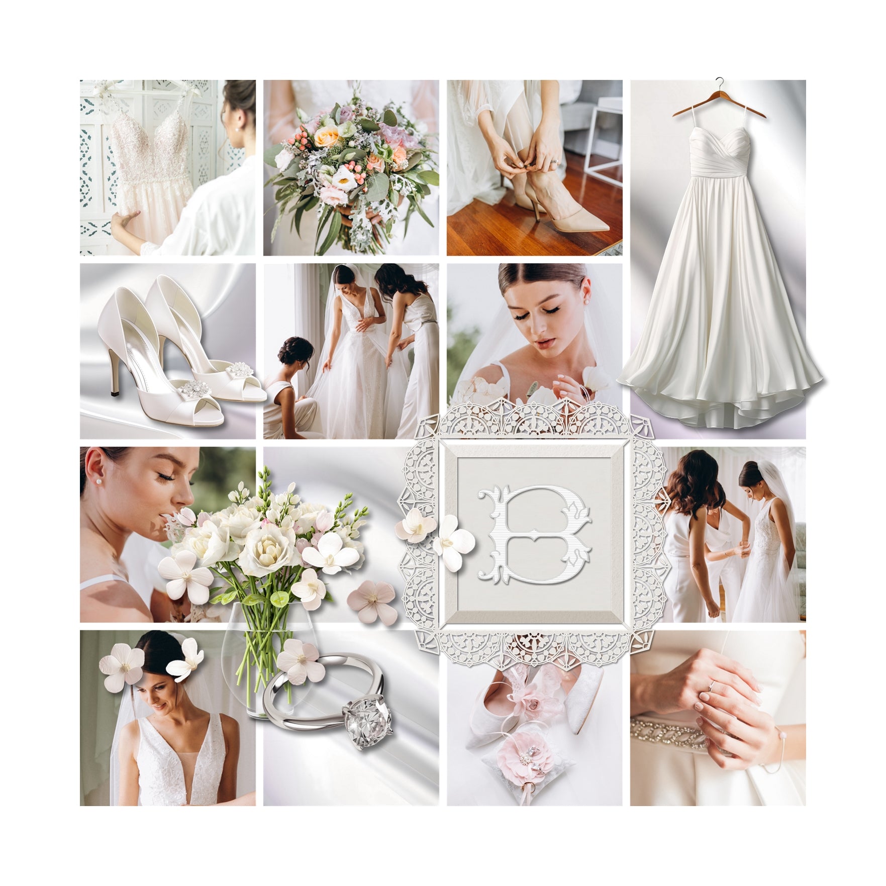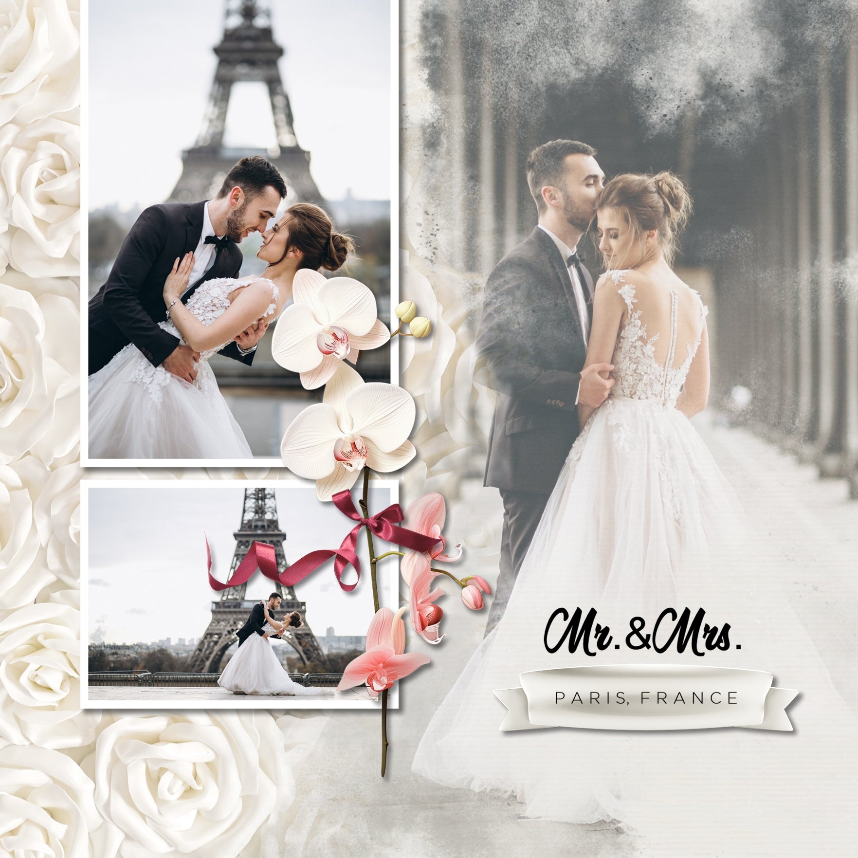 Capture the special moments of your wedding with these realistic digital scrapbooking embellishments and satin papers. Designed to coordinate with the Wedding White Add-On Bundle, these elements are exactly what the bride and groom might like to accent their wedding album, engagement announcement, wedding invitation, or sign-in book.
